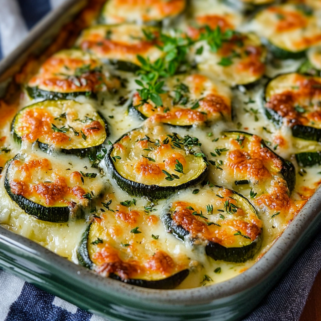 A delightful dish of baked courgettes topped with Emmental cheese, perfect for a healthy meal.