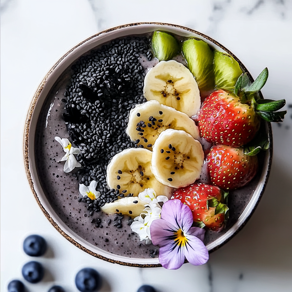 But wait, there’s more! This smoothie bowl is not just delicious; it’s packed with health benefits. Black sesame seeds are little powerhouses of nutrition. They’re rich in calcium, magnesium, and antioxidants. Plus, they add a lovely crunch that contrasts beautifully with the smoothness of the bananas. And speaking of bananas, they’re a fantastic source of potassium and fiber, making this bowl a guilt-free indulgence that keeps you full and satisfied.