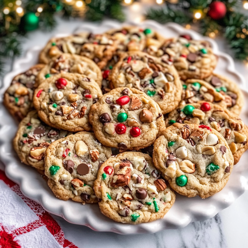 A delightful recipe for Christmas Kitchen Sink Cookies, packed with festive flavors and textures.