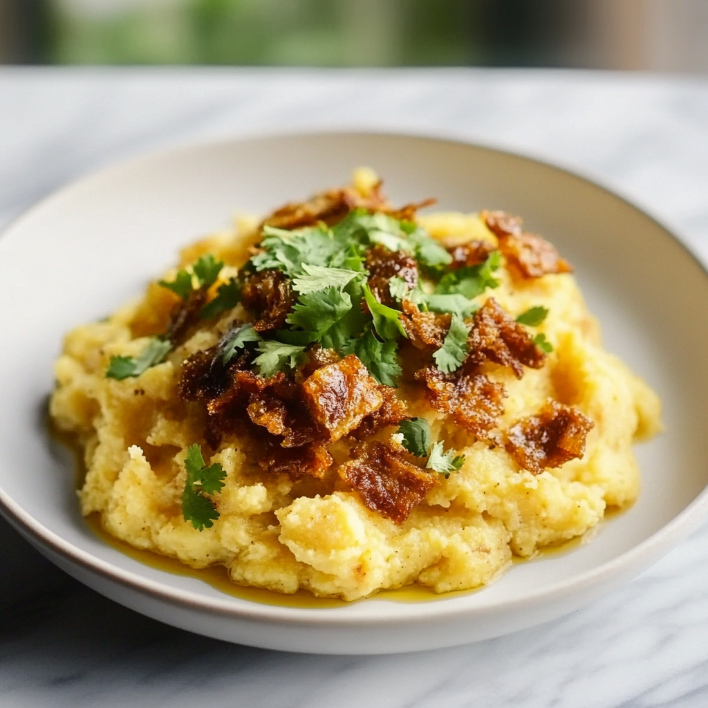 Savory Plantain Delight with Crispy Pork Bits