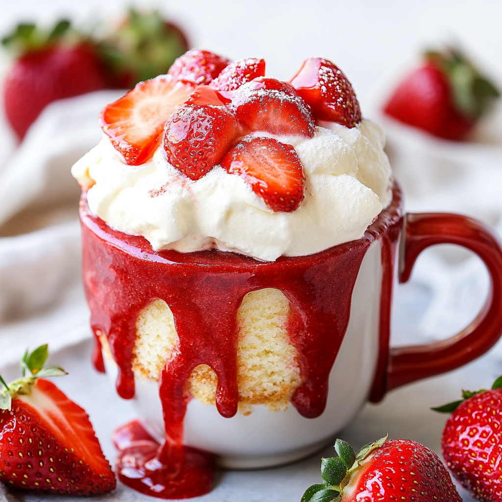 What makes this mug cake truly special is not just its ease of preparation, but also the delightful flavors that dance on your taste buds. The combination of fresh strawberries and creamy goodness is simply irresistible. It’s like a summer picnic in a mug, bringing a burst of joy to your day. Plus, it’s so quick to make that you can whip it up even on the busiest of days. Just a few simple ingredients, a quick mix, and a minute or two in the microwave, and you’re ready to enjoy a slice of heaven!