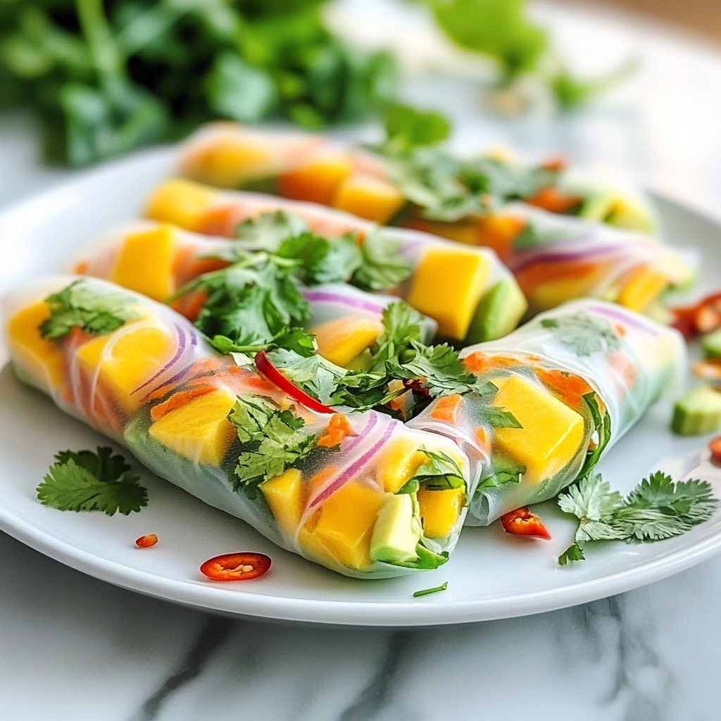 And there you have it! A delightful dish that’s not only easy to make but also bursting with flavor. These Mango & Avocado Spring Rolls with Chili Lime Drizzle are perfect for a quick lunch, a light dinner, or even as a fun appetizer for your next gathering. Enjoy every bite!