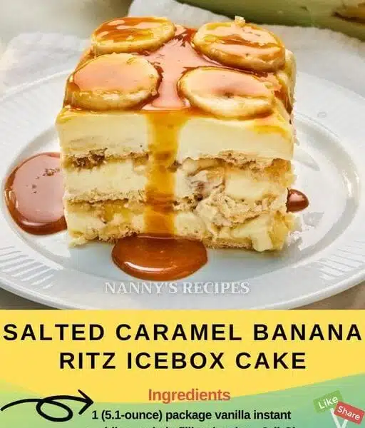 This Salted Caramel Banana Ritz Icebox Cake is a no-bake dessert that’s a delicious blend of sweet, salty, and creamy. Layers of salted caramel, banana slices, whipped cream, and buttery Ritz crackers come together to create a rich and indulgent treat. Perfect for any occasion, this easy-to-make icebox cake is sure to be a crowd favorite!