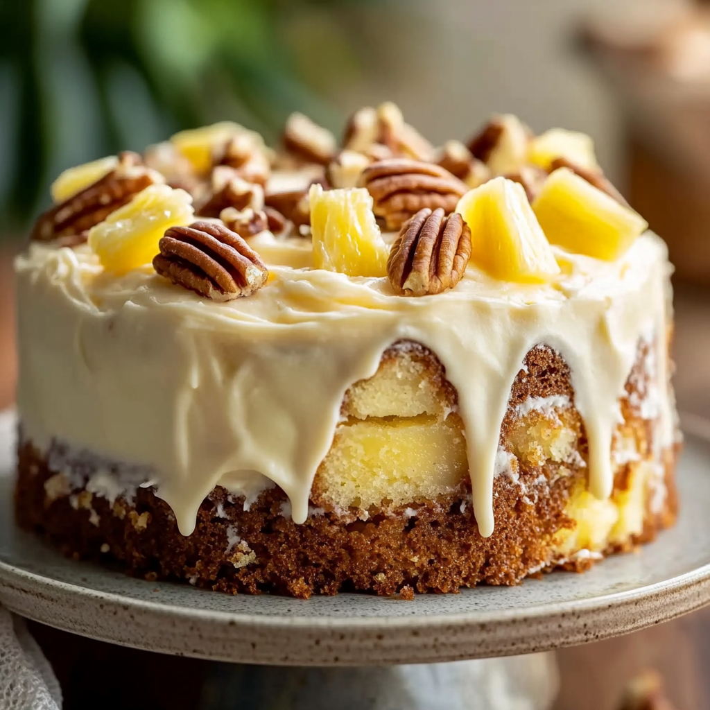 A delicious Southern Creamy Pineapple Pecan Cake that is moist and flavorful, perfect for any occasion.