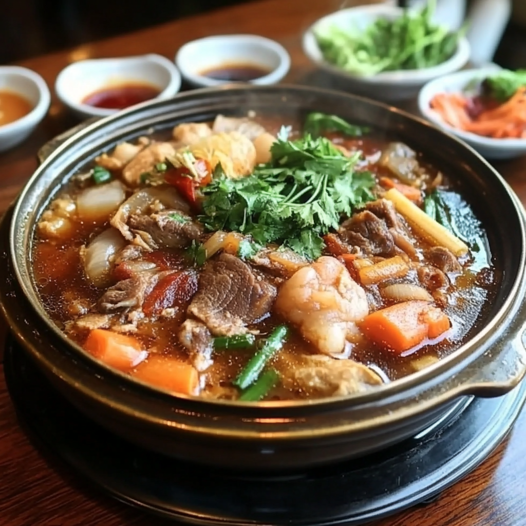 Tendon Hot Pot is a hearty dish featuring tender beef tendon simmered in a flavorful broth with vegetables and tofu. It’s the kind of meal that wraps you in warmth and comfort, perfect for family gatherings or cozy weeknight dinners.