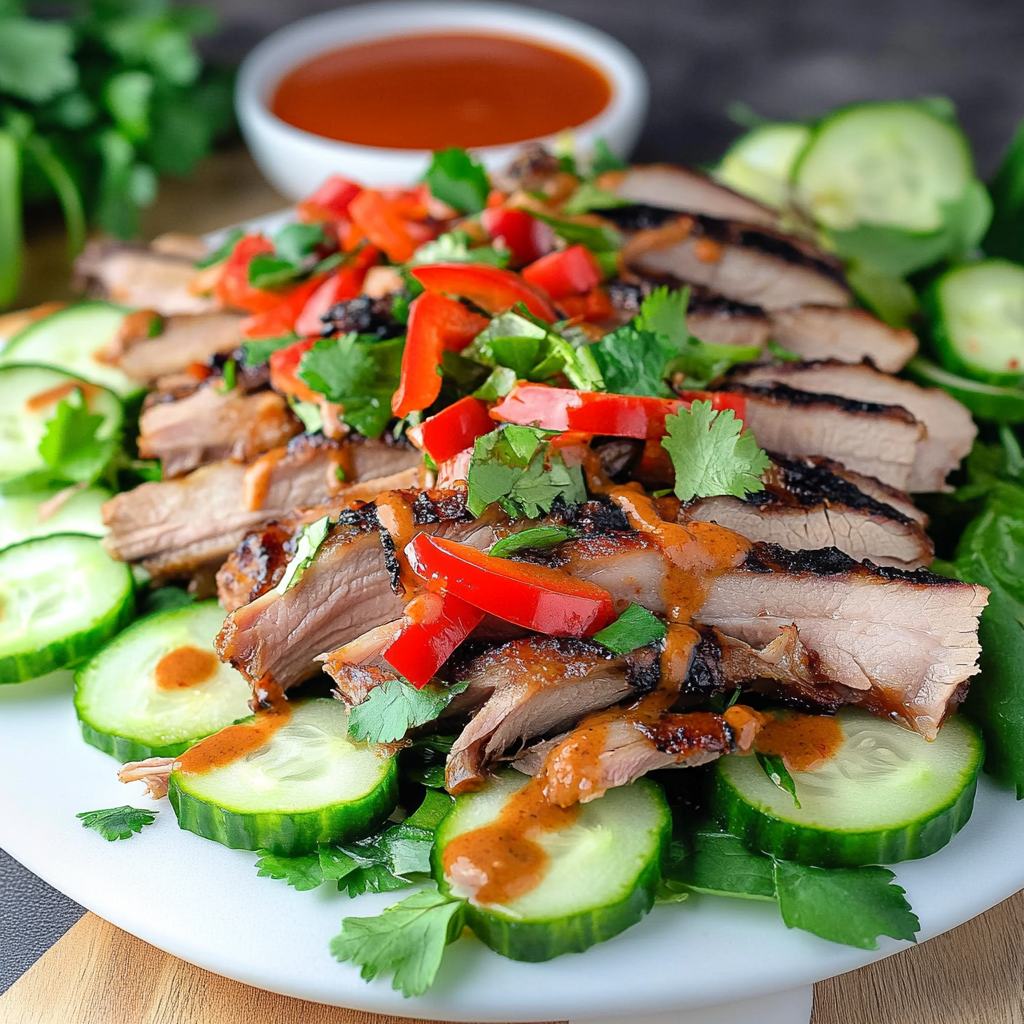 A refreshing and flavorful Thai BBQ Pork Salad that combines tender pork with fresh vegetables and a zesty dressing.