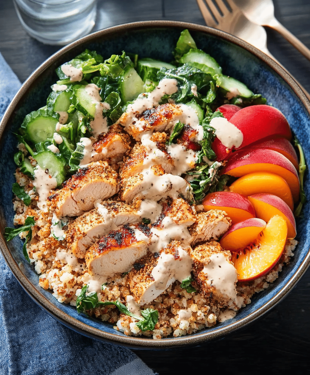 Za’atar Grinated Chicken & Peach Bowl: A Flavorful Delight!
